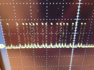 It's a little hard to read, but you can see the 0 bits are shorter than the 1 bits. This picture is the first row of the table below.